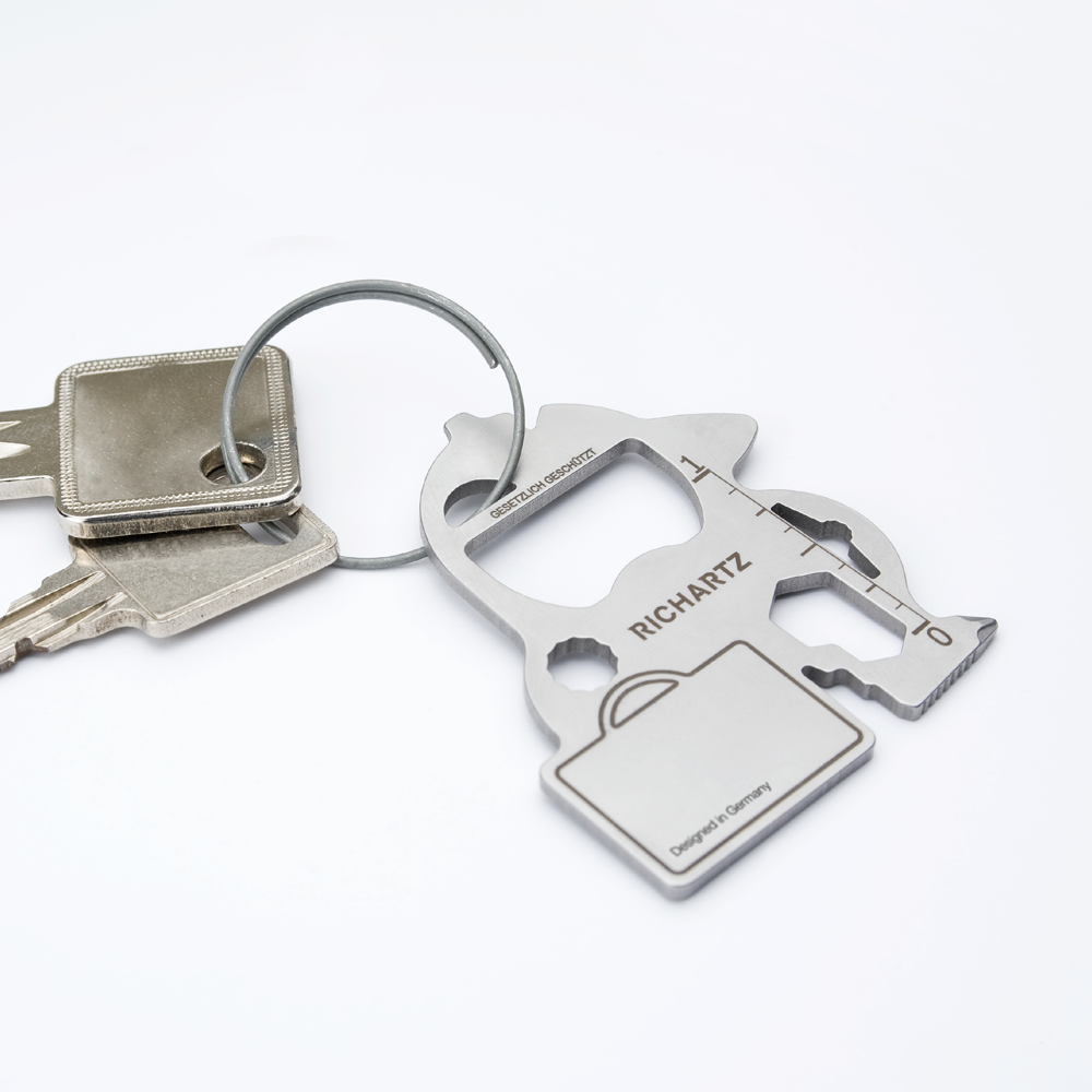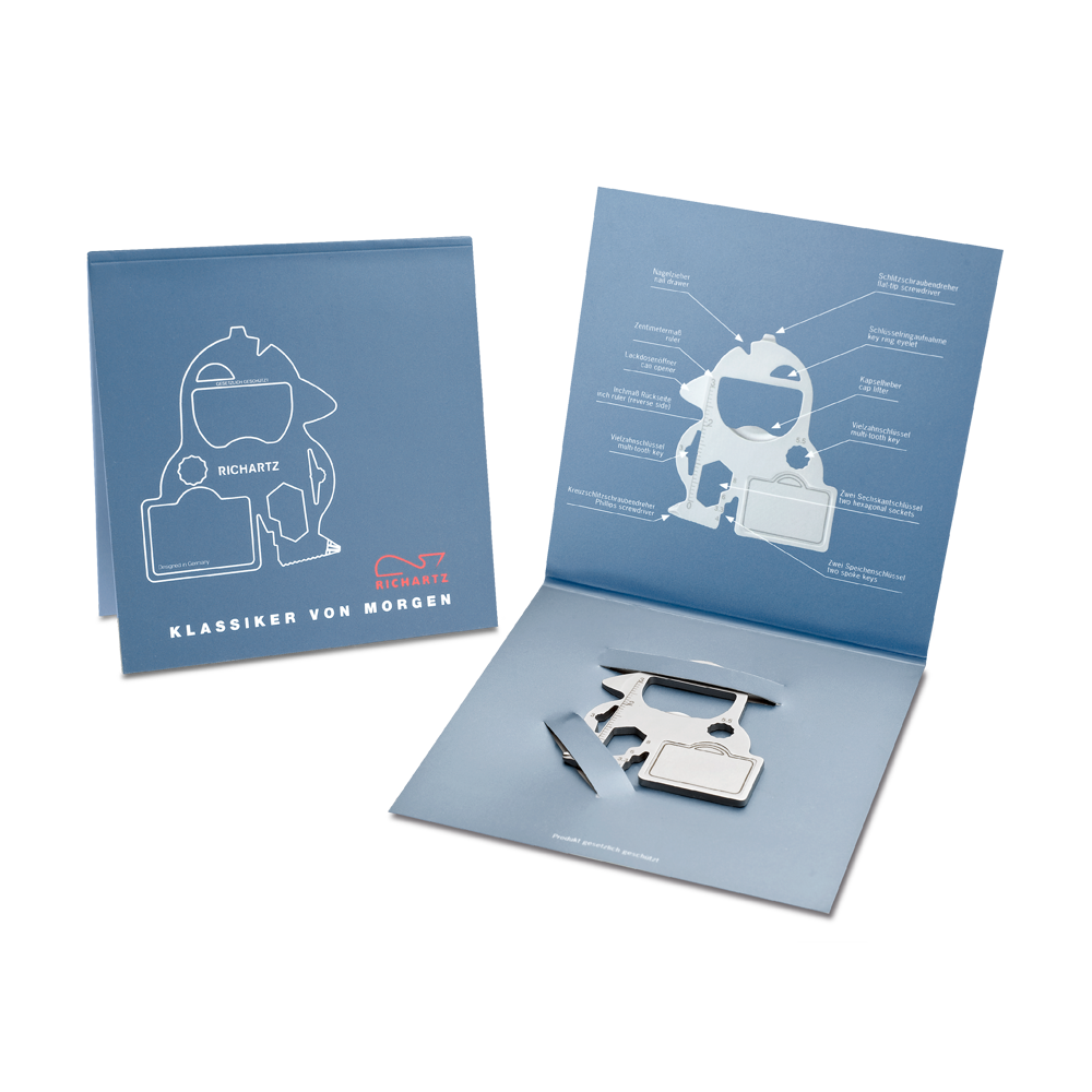 RICHARTZ KEY TOOL® bob junior ist der sympathische Werbeträger für Marken und Unternehmen. Mit einer individuellen Lasergravur, einem aufmerksamkeitsstarken Doming in 4c und einer individuell gestalteten 4-seitigen Verpackung in 4c, werben Marken aufmerksamkeitsstark und aussagekräftig!