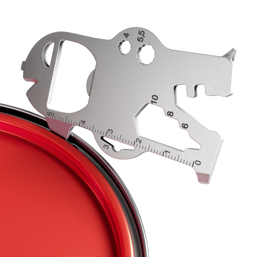 Die nützlichen Funktionen sind ein Mehrwert im Alltag und durch die lange und häufige Nutzung ist ein dauerhafter Werbeerfolg garantiert. Durch seine figurale Formgebung samt Bauhelm bietet sich das Multitool für den Schlüsselbund insbesondere für das Baugewerbe an.