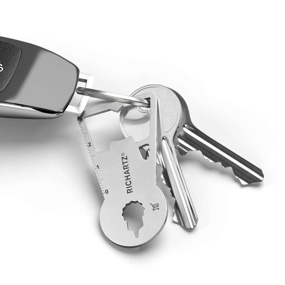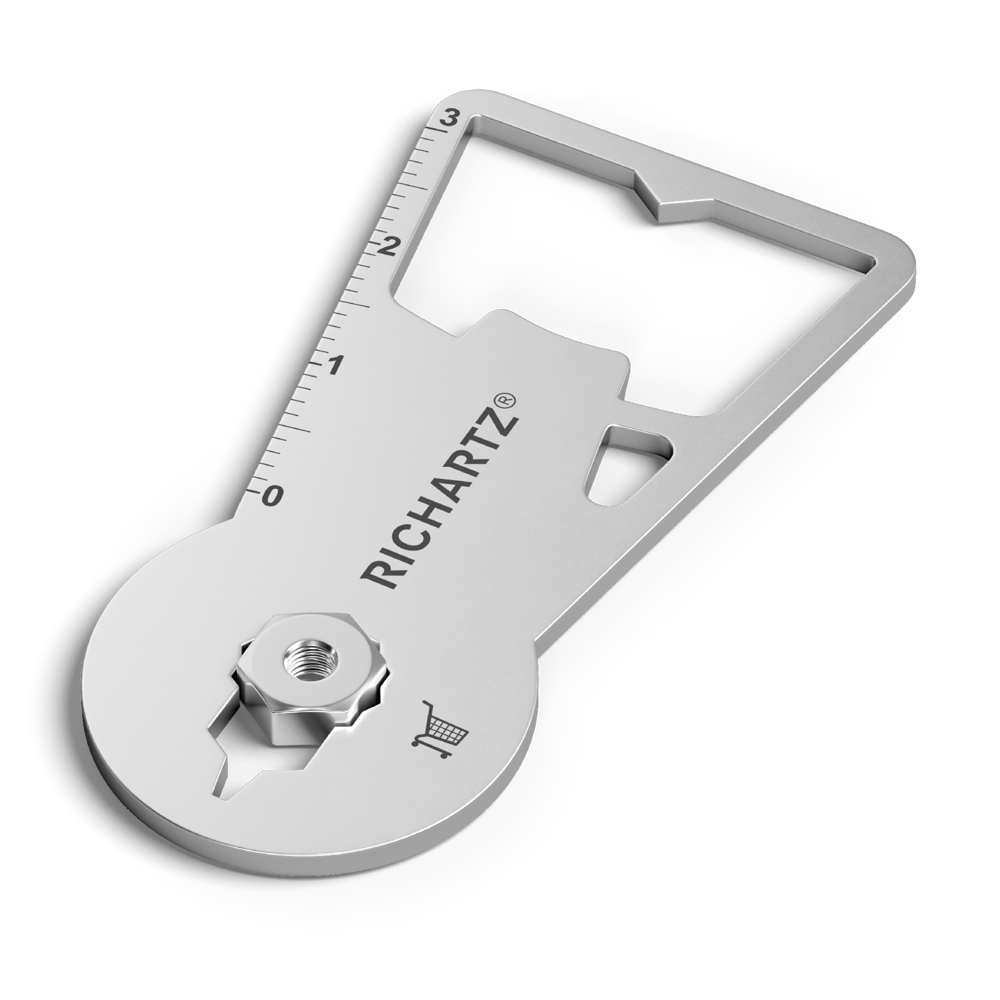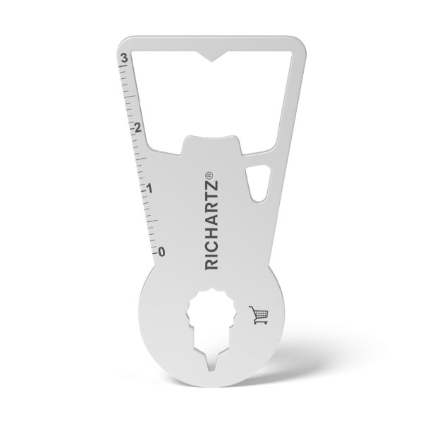 Ultraflach, handlich und an jedem Schlüsselbund entspannt dabei: Kein Kronkorken ist vor unserem FLASCHENÖFFNER plus sicher. Dabei kann er noch viel mehr: Er löst Einkaufswagen und einige weitere Alltagsherausforderungen wie Maß nehmen, Nägel ziehen u.v.m.