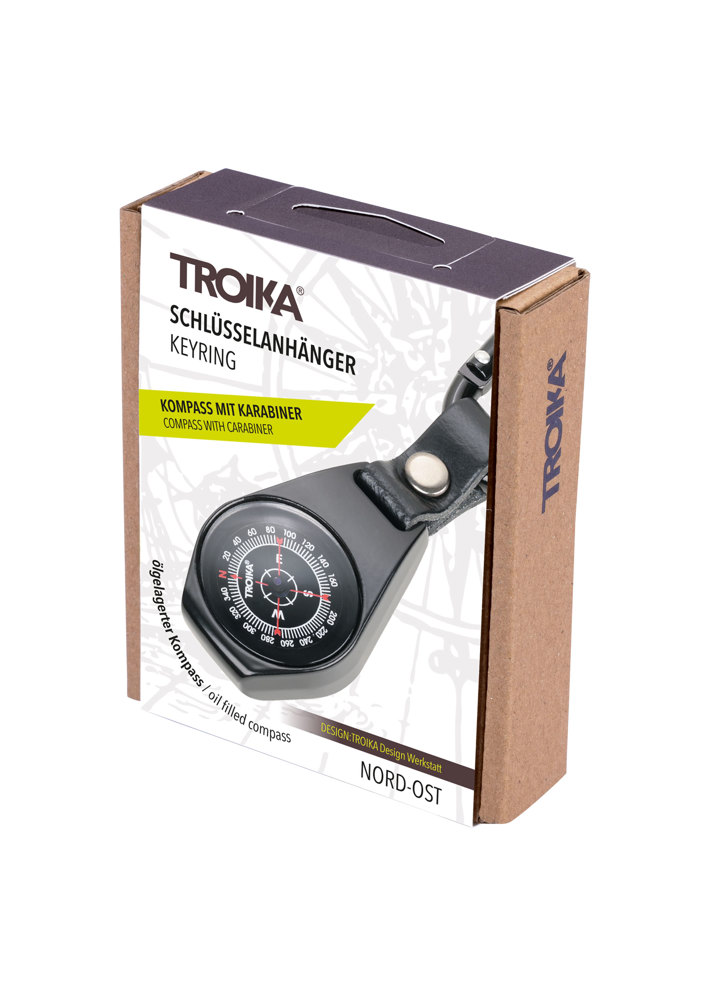 Schlüsselanhänger mit Kompass, inkl. Karabinerhaken und Lederschlaufe, Leder, Metallguss, schwarz mehr