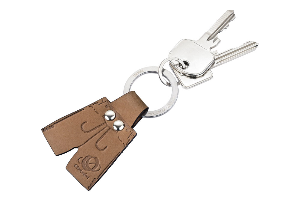Schlüsselanhänger Lederhose, Motiv: OKTOBERFEST, schnelles & einfaches Anbringen der Schlüssel dank patentiertem Öffnungsmechanismus (TROIKA NAIL GUARD), Leder (Made in Germany), braun