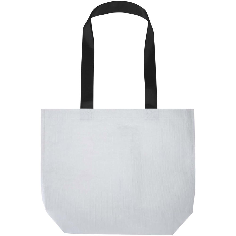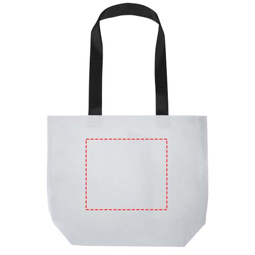 Die Duo Tragetasche mit doppelt laminiertem Boden besteht aus 150 g/m2 GRS zertifiziertem RPET mit doppelter Laminierung und bietet verbesserte Haltbarkeit und Wasserbeständigkeit, wenn es darauf ankommt. Sie verfügt über ein geräumiges offenes Hauptfach, robuste, verstärkte Griffe und einen breiten Boden für zusätzliches Fassungsvermögen. Sie ist für eine Traglast von bis zu 10 kg ausgelegt und stellt eine stilvolle und zuverlässige Option für den täglichen Bedarf, Messen oder Werbeveranstaltungen dar. Fassungsvermögen: 18 Liter.