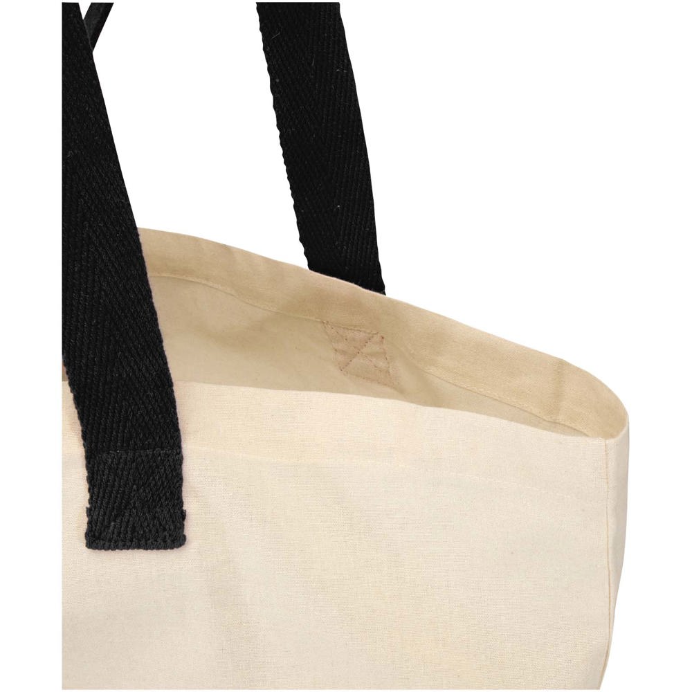 Die leichte, praktische und faltbare Sierra Tragetasche besteht zu 100 % aus GRS zertifizierter Recyclingbaumwolle mit einer Stoffdichte von 140 g/m² und verbindet Flexibilität mit Strapazierfähigkeit. Dank der Reißverschlusstasche am Boden lässt sie sich ordentlich zusammenfalten. Das macht sie kompakt und erleichtert das Mitnehmen. Die Tasche eignet sich ideal zum Einkaufen, für Besorgungen oder auf Reisen. Sie fasst bis zu 10 kg und verfügt über zwei Griffe, die für zusätzlichen Halt und Komfort beim Tragen schwerer Lasten sorgen. Fassungsvermögen: 7 Liter.