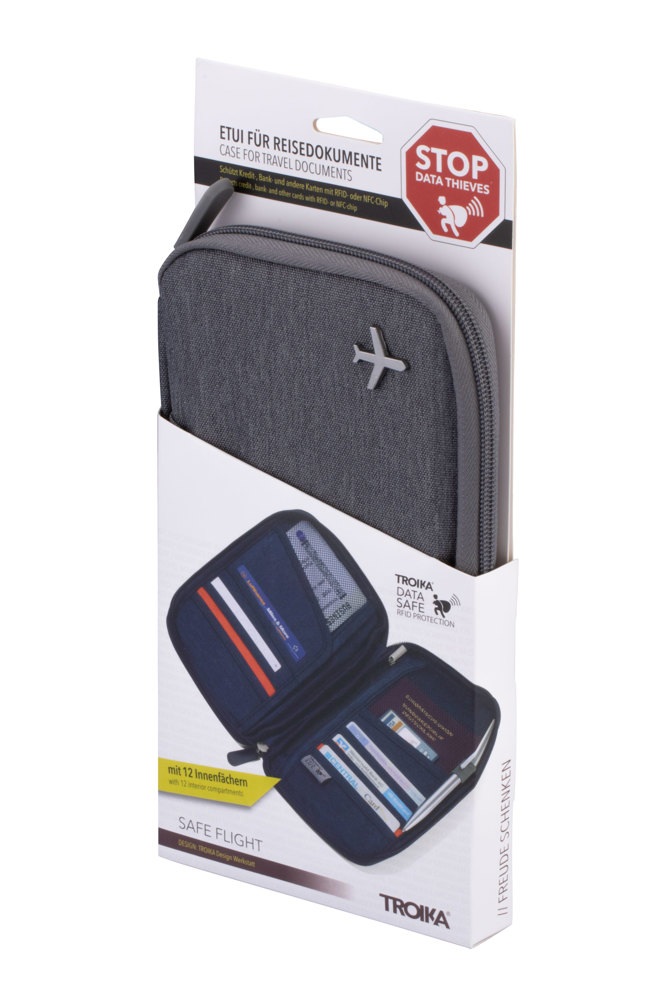 Etui für Reisedokumente, mit Ausleseschutzfolie (für RFID-Chips), Reißverschluss, 12 Innenfächer, Stiftschlaufe, 100% Polyester, Polyester, grau/orange