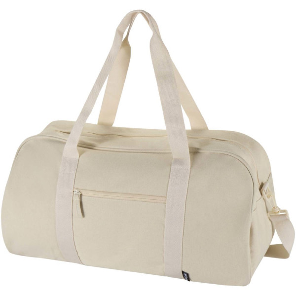 Die Recanvas Reisetasche besteht aus GRS zertifiziertem, wasserabweisendem Recycling Canvas und vereint Langlebigkeit mit Alltagstauglichkeit. Sie verfügt über ein geräumiges Hauptfach, eine Fronttasche mit Reißverschluss für den schnellen Zugriff auf wichtige Dinge, weiche Tragegriffe und abnehmbare, verstellbare Schultergurte für flexible Trageoptionen. Perfekt für das Fitnessstudio, Wochenendtrips oder den täglichen Gebrauch. Fassungsvermögen: 40 Liter.