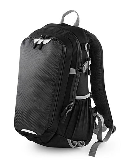 600D / Ripstop-Honigwaben-Polyester-Mischung | Abnehmbarer, wasserdichter Regenschutz | Passend für Laptops bis 15,6'' | Gepolsterte, verstellbare Schultergurte | Verstellbare Hüft- und Brustgurte | Ergonomisch geformtes, atmungsaktives Rückenteil mit Netzeinsatz | Trinkblasenkompatibles Fach | Aufhängungsvorrichtung für Wanderstöcke | Kompressionsgurte | Elastische Netz-Seitentaschen | Seitentasche mit Reißverschluss | Netz-Innentasche | Reflektierende Akzente | Befestigungsschlaufe für Rücklicht | Haltegriff | Abreißetikett | Volumen: ca. 20 Liter | Lieferung ohne Inhalt/Deko