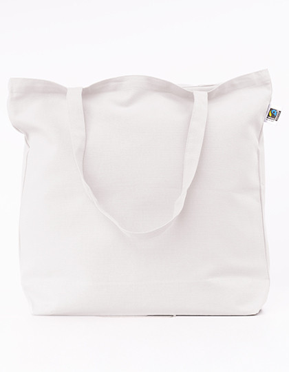 100% Fairtrade-zertifizierte Bio Baumwolle | Sehr robuste Köperbindung | Lange Henkel (ca. 60cm) | Maße: 40 x 46 cm | Breite Bodenfalte (13 cm) | Schwere Grammatur von 310 g/m² | Abgerundete Ecken | Kreuznähte an Henkelverbindung | Stabile Innenverkettung | Fairtrade Siegel außen am Beutel sichtbar | Lieferung ohne Inhalt/Deko