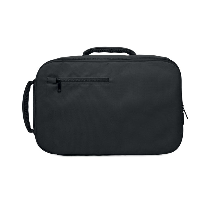 Erweiterbarer Rucksack in Kabinengröße aus 600D RPET-Polyester. 180°-Öffnung. Hauptfach mit zwei Fächern, gepolstertem 15'' Laptopfach, Netztrennung und Trolley-Halterung.