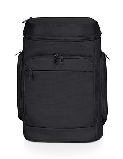 Recycelter Oberstoff | Voll gepolstertes Hauptfach mit dreiseitig umlaufendem 2-Wege-Reißverschluss für komfortables Packen | Helles Innenfutter für optimale Übersicht | Große, gepolsterte Vortasche mit 2-Wege-Reißverschluss und Isolierwirkung, ideal z. B. für Lunchbox | Zusätzlich flaches Reißverschluss-Vorfach | Flaches Reißverschluss-Deckelfach | zwei Reißverschluss-Seitentaschen | Innen: gepolstertes Notebookfach mit Befestigungslasche, verdecktes AirTag-Fach, Reißverschluss-Netzfach | Rückseitig ergonomisch gepolstertes Tragesystem mit höhenverstellbarem Brustgurt | Befestigungsschlaufe für Trolley-Gestänge | Handgriff