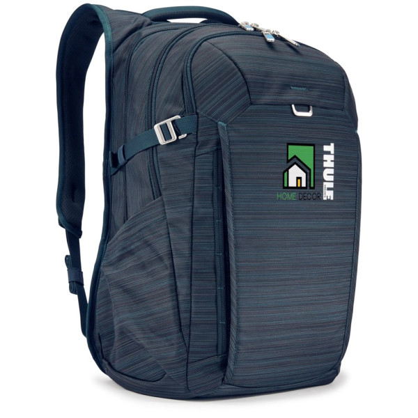 Der Thule Construct Rucksack 28L ist ein zeitgemäßer und praktischer Rucksack mit viel Organisation und Stauraum für Arbeit oder Reisen. Schützen Sie einen Laptop bis zu 15,6 Zoll und ein Tablet bis zu 10,5 Zoll in dem dafür vorgesehenen, gepolsterten Fach mit einer weichen Tasche. Bewahren Sie kleine Gegenstände oder ein Laptopkabel in der Seitentasche mit Reißverschluss auf und stecken Sie eine Wasserflasche in die erweiterbare offene Seitentasche. Es wird auch mit einem hochauflösenden DTF-Thermotransferdruck Ihres Logos personalisiert.