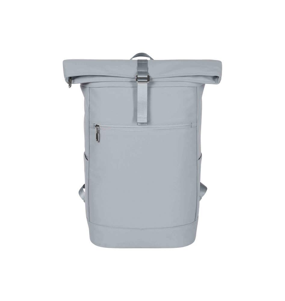 modischer Rolltop-Rucksack; Reißverschluss-Hauptfach mit verstellbarem Verschlusssystem; Schlaufenband auf dem Deckel; wertige Metallaccessoires; gepolstertes Notebookfach; Reißverschluss-Vortasche; zwei seitliche Einsteckfächer; gepolsterter Boden; gepolstertes Tragesystem; rückseitige Befestigungsschlaufe für Trolley-Gestänge; Handgriff