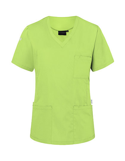 Köpergewebe, 150 g/m² | Waschecht, pflegeleicht, nachhaltig | Mit V-Ausschnitt und kurzen Ärmeln | Polyesteranteil aus recyceltem Plastik | Besonders leichter Stoff für ein angenehmes Tragegefühl im Berufsalltag | Waschbarkeit bei 95°C | Leicht tailliert geschnitten | 2 aufgesetzte Seitentaschen mit 1 verdeckter Innentasche | 1 Schlaufe in der Seitentasche zur Befestigung einer Schlüsselkette | 1 aufgesetzte Brusttasche links mit Stiftfach | Grüner Knopf zertifiziert, www.g-k.eu/karlowsky