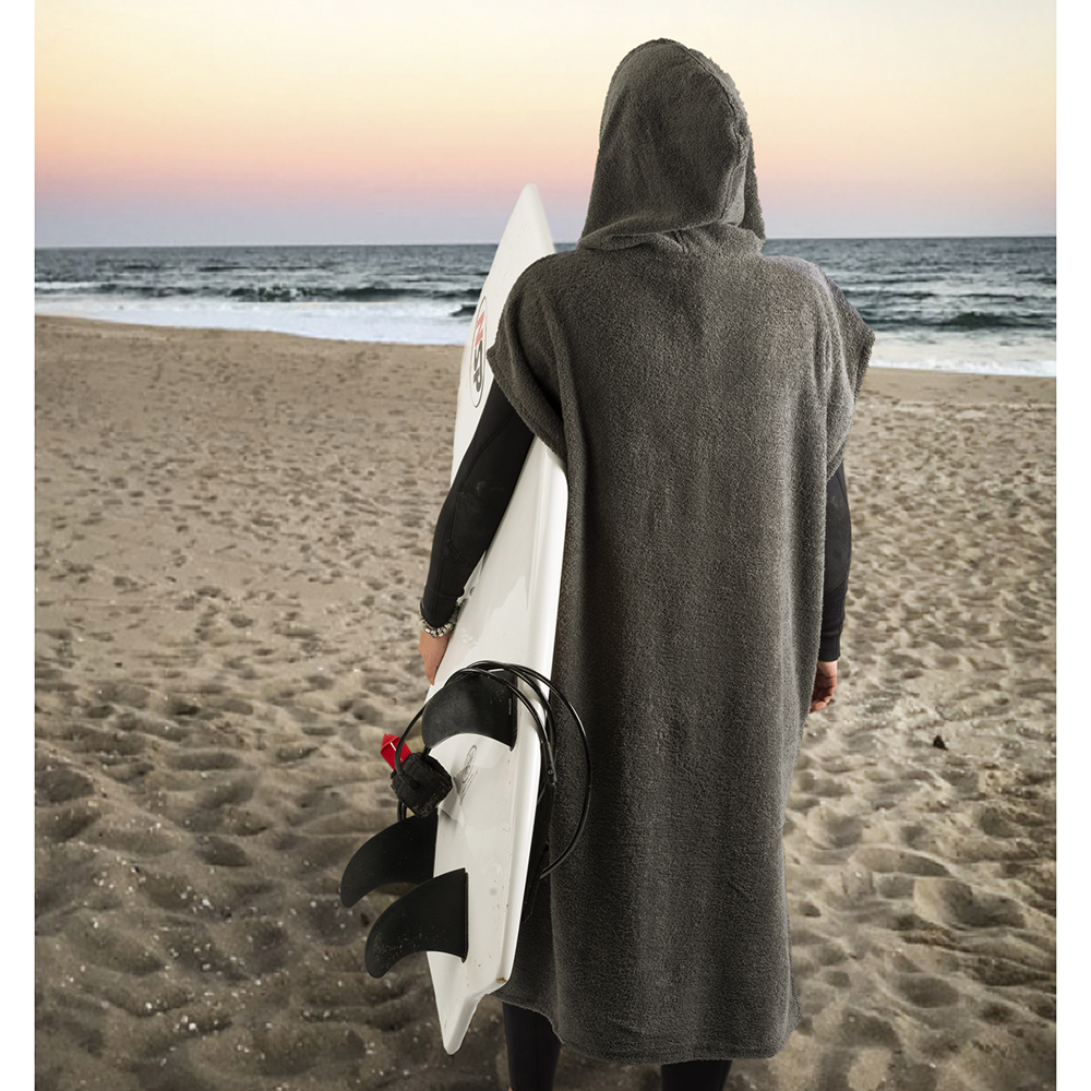 Unser Surfponcho CONCHO ist der perfekte Begleiter für alle Wassersportler. Aus 100 % Baumwolle Walkfrottier mit einem Gewicht von ca. 360g/m² gefertigt, bietet er ultimativen Komfort und ist gleichzeitig besonders saugfähig. Mit einer praktischen Kapuze mit Umschlag und einer Hoodie-Einstecktasche vorne, eignet sich der Poncho ideal zum Umziehen nach dem Surfen oder Schwimmen. Eine Aufhängeschlaufe sorgt für eine einfache Aufbewahrung. Zudem ist der Poncho waschbar bei 60°C und trocknergeeignet. Für maximale Flexibilität kann er eingerollt als Beutel getragen werden.