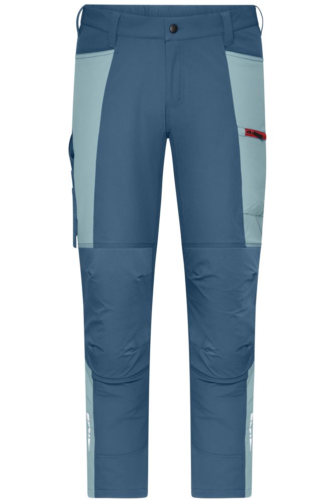 Zollstocktasche, Stiftefächer sowie Kniepolster und Saumbereich aus robustem, elastischem Polyamid-Gewebe
