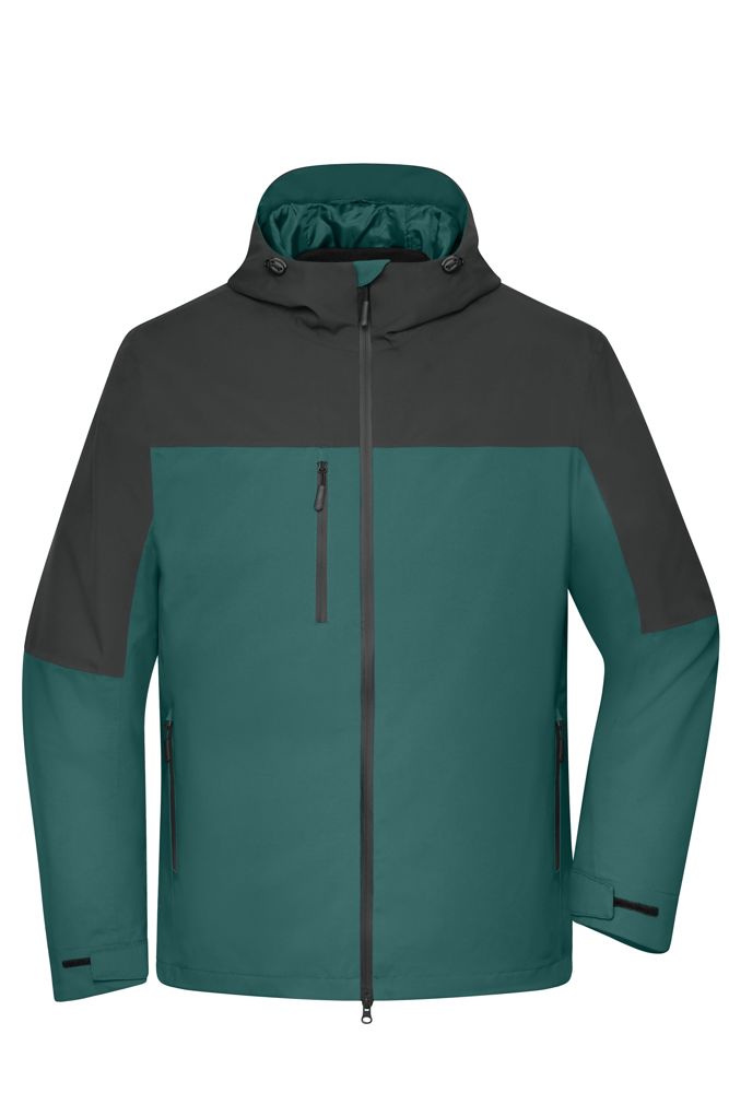 Außenjacke mit Membran ist wind- und wasserdicht (10.000 mm Wassersäule), atmungsaktiv und wasserdampfdurchlässig (5.000 g/m²/24h)