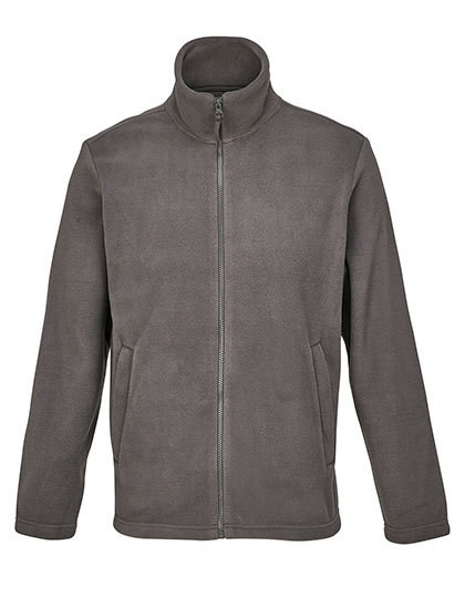 Microfleece | Recyceltes Polyester | Anti-Pilling-Behandlung | Nackenband | Gefütterter hoher Kragen | Hauptöffnung mit eingespritztem Reißverschluss und Ton-in-Ton-Metall-Reißverschlussschieber | 2 Reißverschlusstaschen mit Klappen | Bequeme Passform | Aufkleber abreißen