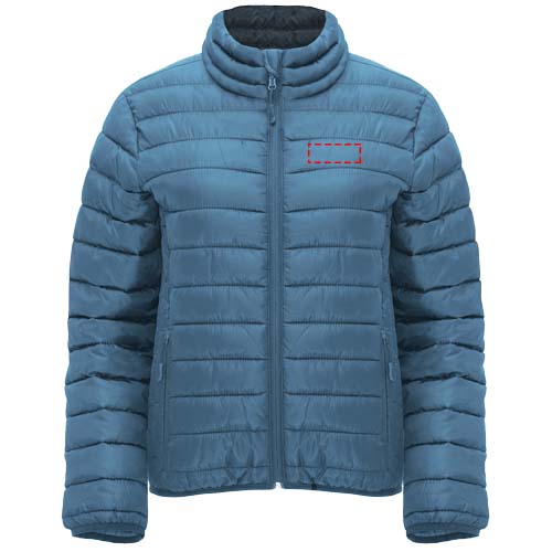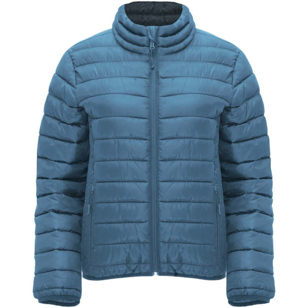 Wattierte Steppjacke für Damen. Umgekehrte Reißverschlüsse mit Kinnschutz und Zipper. Zwei Fronttaschen mit Reißverschluss. Passende elastische Bündchen an Kragen, Ärmeln und Saum. Kontrastfarbiges Innenfutter. Inklusive verstaubarer Transporttasche. Leicht und faltbar. Figurbetonter Schnitt. Herausnehmbares Etikett. Wasserabweisend. Winddicht. Das Modell ist 179 cm groß und trägt Größe S.