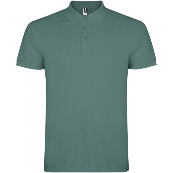 Kurzärmeliges Poloshirt für Herren. Verstärkte und verdeckte Nähte am Innenkragen. 1x1 Rippstrickbündchen an Ärmeln und Kragen. Seitennähte. 3-Knopfleiste und Seitenschlitze. Optionale Tasche. Herausnehmbares Etikett. Das Modell ist 185 cm groß und trägt Größe L.