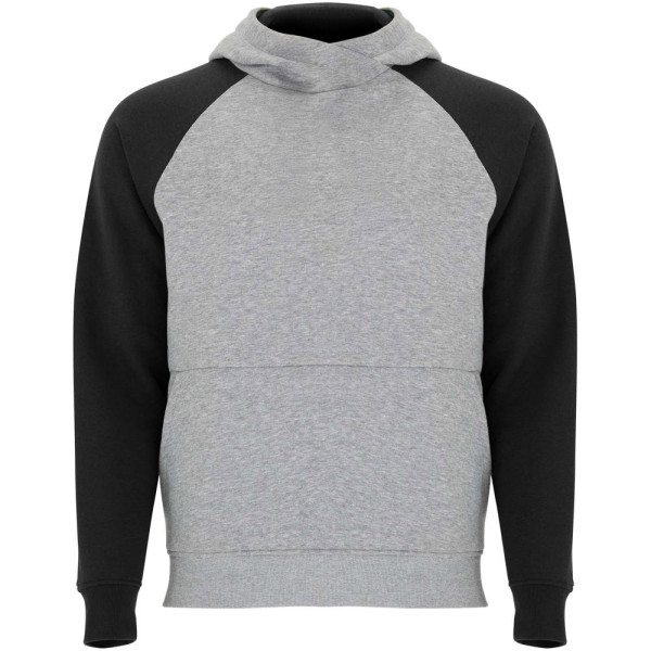 Zweifarbiger Unisex Kapuzenpulli. Kapuze mit gekreuztem Kragen und Metallösen. Innenkapuze, Kordelzug und Raglanärmel in Kontrastfarbe. Kängurutasche. Bündchen und Saum aus elastischem 1×1-Rippstrick. Abnehmbares Etikett.