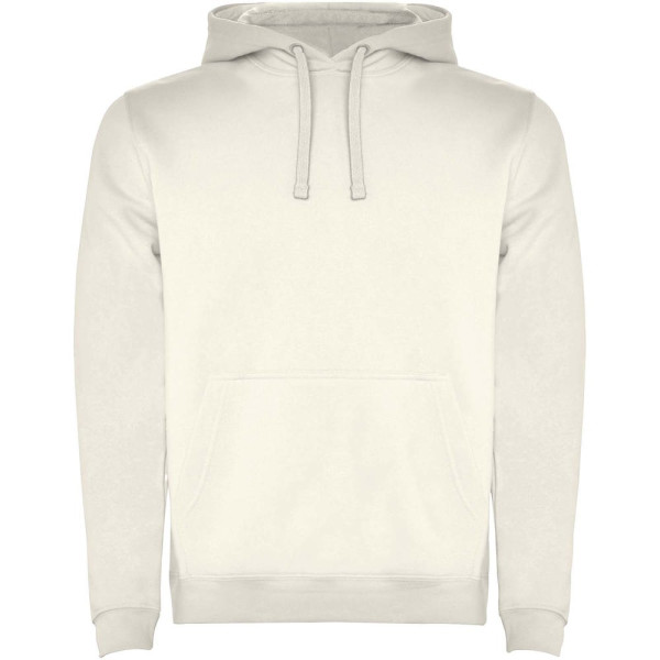 Kapuzenpullover mit doppeltem Stoff, verstellbarem Kordelzug in Kontrastfarbe, verstärkten und verdeckten Nähten am Kragen und Kängurutasche. Verfügbar in Zweifarbig und Uni. Elastischer 1×1-Rippstrick an Ärmeln und Bund. Abnehmbares Etikett. Das Modell ist 185 cm groß und trägt Größe M.