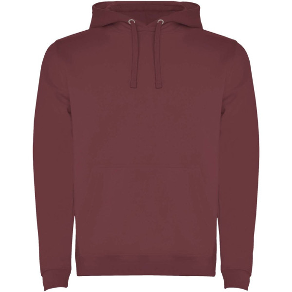 Kapuzenpullover mit doppeltem Stoff, verstellbarem Kordelzug in Kontrastfarbe, verstärkten und verdeckten Nähten am Kragen und Kängurutasche. Verfügbar in Zweifarbig und Uni. Elastischer 1×1-Rippstrick an Ärmeln und Bund. Abnehmbares Etikett. Das Modell ist 185 cm groß und trägt Größe M.