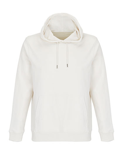 Außenmaterial: gekämmte Bio-Baumwolle in Umstellung | Recycelter Polyester | Geschnitten und genäht | Eingesetzte Ärmel | 2x2-Ripp an Bündchen und Saum | Kängurutasche | Jersey-Halbmond und Nackenband im Kragen | Kapuze mit Jersey-Futter | Kordelzug mit Metallösen und Stoppern | Ungebürstete Innenseite