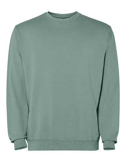 Unisex Sweatshirt mit Rundhalsausschnitt | Frottee-Baumwolle, sauer gewaschen | 2x1 gerippter Kragen, Manschetten und Saum in Ton | Verstärkte Nähte an Bündchen, Saum, Bund und Armausschnitten | Ton-in-Ton-Deckstich am Halsausschnitt