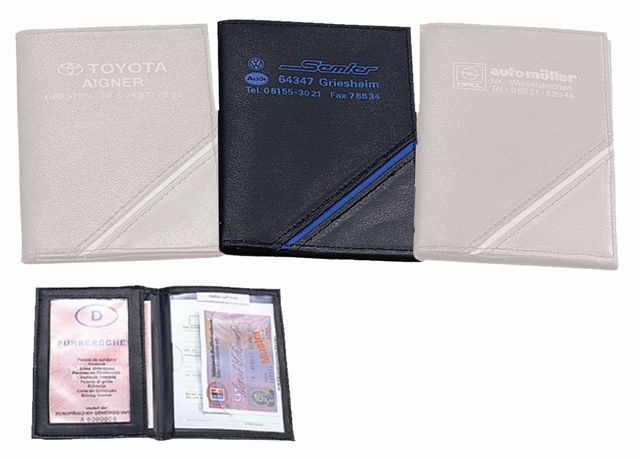 Repräsentative Ausweistasche mit farbigem Akzent. VPE 400. 2 Ausweis- und 1 Kartenfach mehr