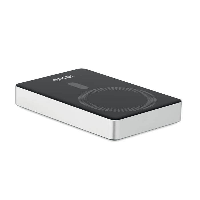 Powerbank 10000mAh. Gehäuse aus recyceltem Aluminium mit Kontrollleuchte. Kabelloses Laden mit 15W und kabelgebundenes Laden mit 20W für schnelle und effiziente Stromversorgung.