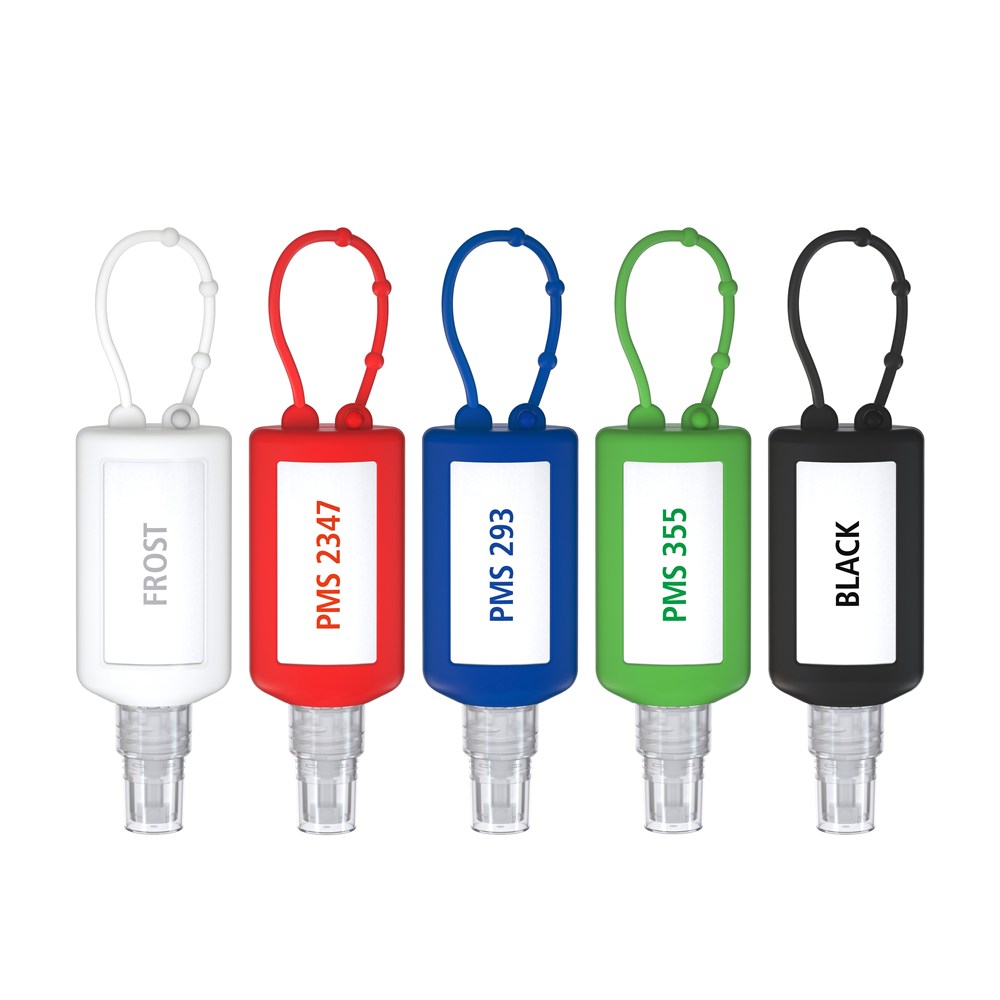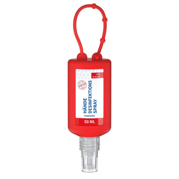 Hände-Desinfektionsspray (DIN EN 1500), 50 ml Bumper rot, Body Label (R-PET)