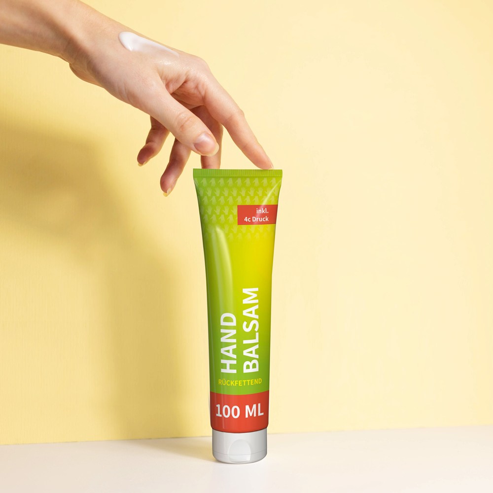 Handbalsam Ingwer-Limette, 100 ml Tube (weiß) mit Klappdeckel.