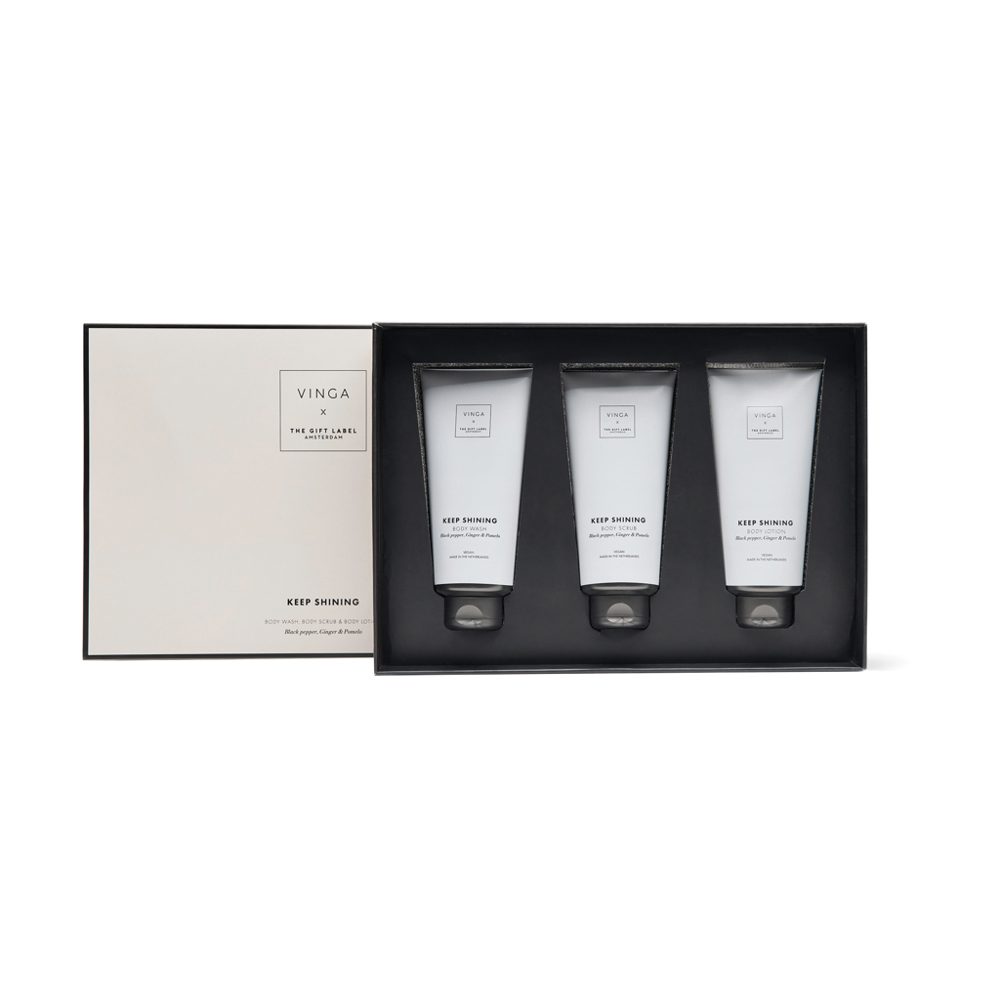 Verwandeln Sie jede Dusche oder jedes Bad in ein luxuriöses Ritual. Dieses 3-teilige unisex Set enthält 200ml-Tuben mit Duschgel, Körperpeeling und Körperlotion, die Ihre Haut von Kopf bis Fuß pflegen. Mit dem warmen, spritzigen Aroma von schwarzem Pfeffer, Ingwer und Pomelo hinterlässt es Ihre Haut glatt, erfrischt und dezent parfümiert. Elegant verpackt in einer Geschenkbox in Cremeweiß und Schwarz.