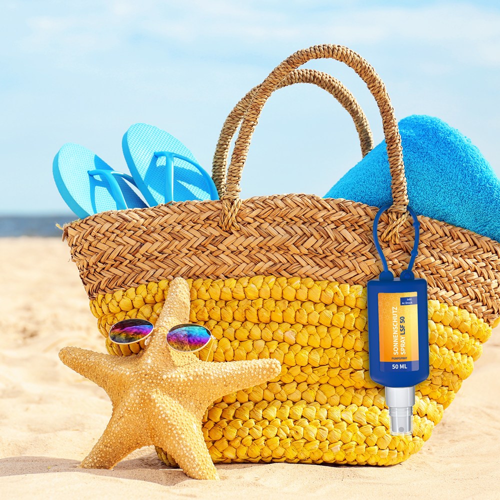 Sonnenschutzspray (LSF50), 50 ml Bumper blau, Body Label (R-PET)